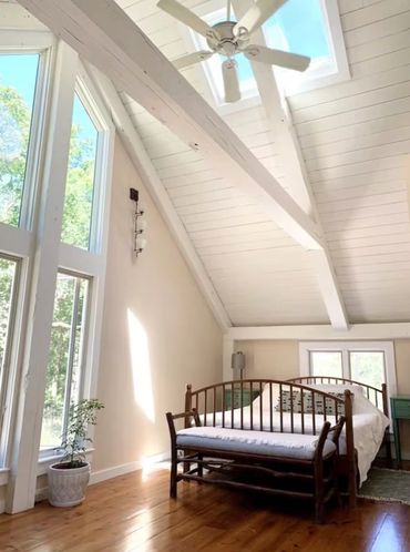 This spacious and sunlit contemporary post and beam home with cathedral ceilings is ideally located near town and privately situated on a hill. It is within walking distance of downtown Orleans (dining, shopping and Cape League Baseball games) with close proximity to town landings, Nauset Beach, and so much more! The long shell driveway leads through a newly planted orchard to the top of a hill that opens up to a secluded and serene yard. Please note that this property does not allow any pets.
